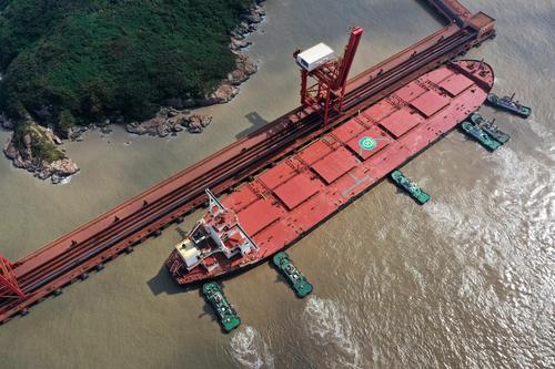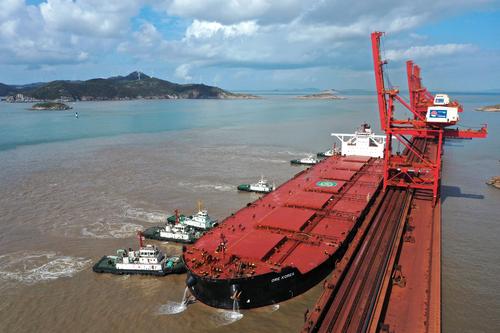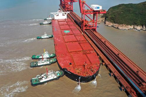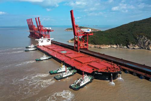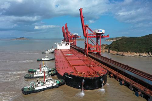 浙江舟山:40万吨级韩国矿石货船到港卸货