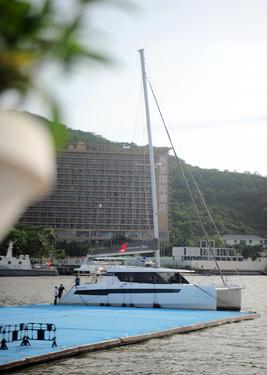 2022年7月4日,海南三亚,“零关税”猎豹50型”阿波罗“号双体帆船停泊在三亚港。