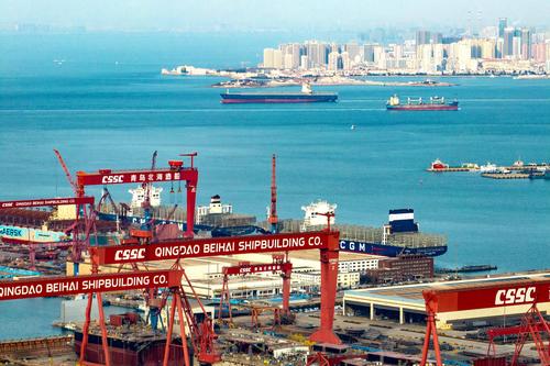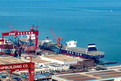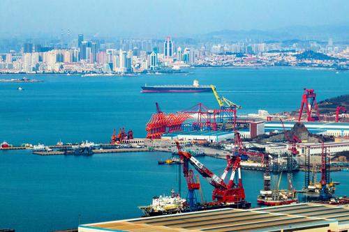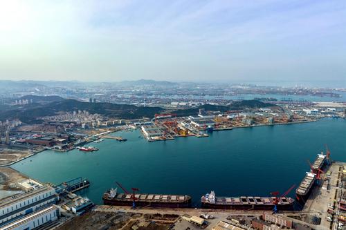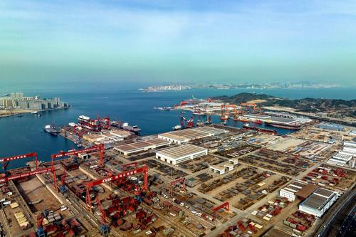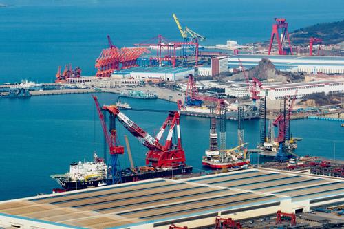 2023年2月2日,山东青岛西海岸新区海西湾船舶海工产业基地一派生机勃勃的发展景象。
