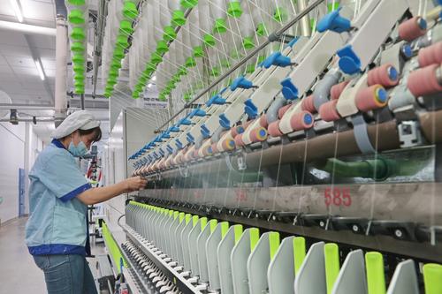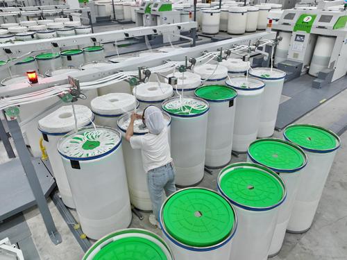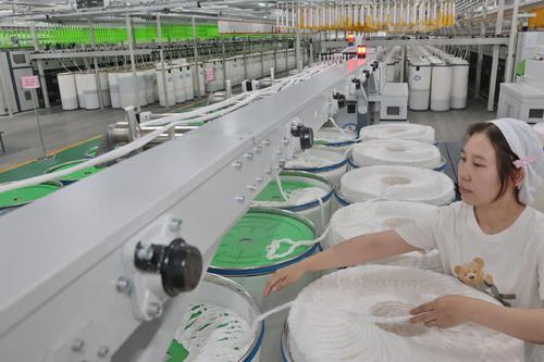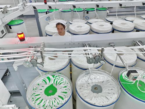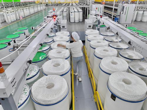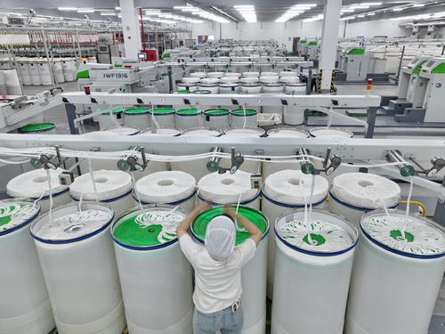 江苏南通:全国首个10万锭智慧纺纱工厂生产忙