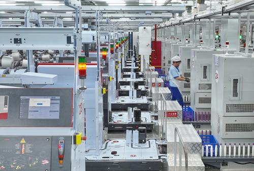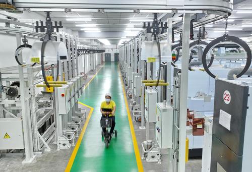 2023年6月6日在江苏省南通市崇川区拍摄的江苏大生智慧纺纱工厂忙碌的生产车间。今年3月9日举行全面达产仪式的大生智慧纺纱工厂是国家工信部和发改委认定的“十四五”全国第一个“智慧纺纱工厂”,也是全国纺织行业首个运用5G数据传输技术和智能管理云平台的工厂。工厂采用全流程智能化纺纱成套装备,实现运营智能化、装备智联化、制造数字化。万锭用工小于10人,生产效率在数字化纺纱车间基础上提高了20%,成为国内用智能化改造传统纺织产业的新标杆。