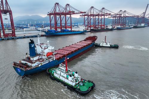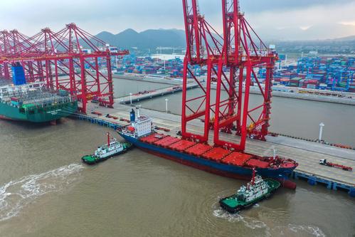 2023年8月10日清晨,科摩罗籍“索菲娅”集装箱轮缓缓驶入宁波舟山港,在二艘拖轮的协助下靠泊金塘港区大浦口集装箱码头。现场值勤的舟山出入境边防检查站民警介绍,“索菲娅”集装箱轮是瑞欧俄罗斯2线的首航船,从俄罗斯东方港直接过来,将在大浦口码头完成309个标准箱的装卸作业后离港出境,驶往俄罗斯海参崴。为保障新航线首航成功,舟山出入境边防检查站严格落实“一船一策”便民利企举措,提前对接码头、船代相关单位,合理优化勤务部署,以优质高效的通关服务圆满完成该轮首航出入境边防检查任务。