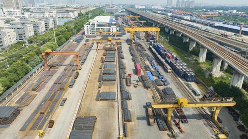 2023年8月25日,在安徽省合肥庐阳经济开发区辖区中铁四局物资公司合肥分公司的钢材物料现场,技术人员正在通过数据平台远程对钢材进行进出货调配。据了解,企业依托智慧仓储大数据平台,实现智能入库调度、远程开单,提升工作效率。今年1-7月,企业钢材吞吐总量达102.77万吨,集装箱吞吐量达14463标箱。