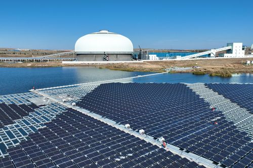 据悉,该项目是国内首个高盐、高矿化度矿井水水域漂浮电站,把闲置矿井水水域与新能源发展有机结合,利用矿井疏干水聚集湖的湖域建设光伏电网,实现土地的空间集约利用。年均发电量约3239万千瓦时,年节约标准煤9875吨,减少二氧化碳排放量约2.7万吨。