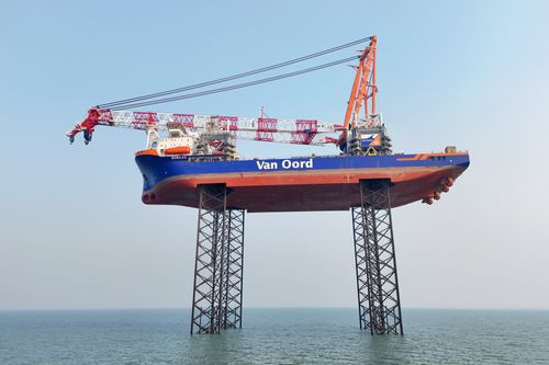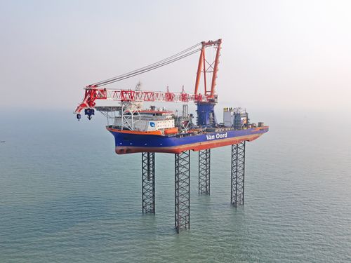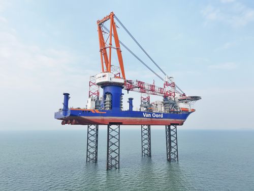 2025年1月8日,由中集来福士为荷兰Van Oord公司建造的,全球最大、最新一代自升自航式海上风电安装船BOREAS号在山东烟台交付。BOREAS号甲板面积超过7000平方米,最大工作水深80米,最大升降能力达55000吨,主吊起重能力达3310吨,吊臂高155米,能够安装25兆瓦的海上风机。其主尺度、升降能力、起重能力等关键指标均居全球同类产品之首。