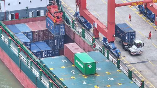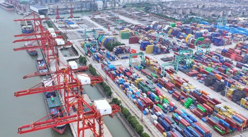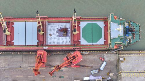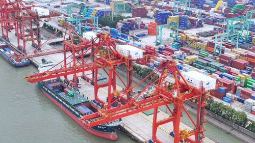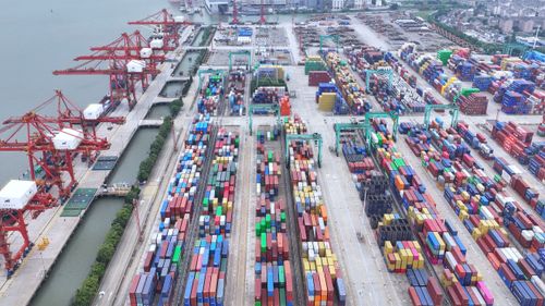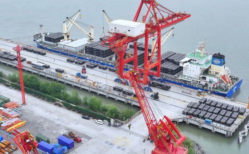 2025年5月31日,江苏张家港港码头车来船往,货物装卸繁忙有序。当日是端午节,张家港港数千名码头工人依然坚守在各自工作岗位第一线抢运货物,辛勤工作,确保港口“人员不停工、货物不压港”,在劳动中度过节日。