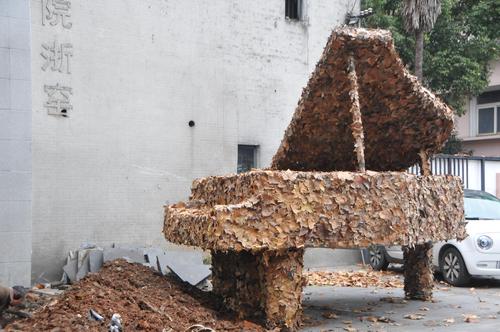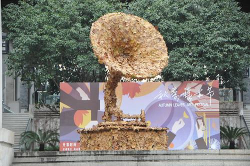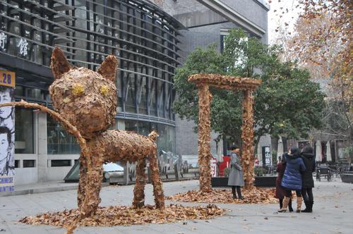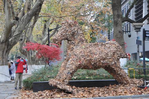 2020年12月13日,中国美术学院一年一度的“秋叶艺术节”开启,师生们围绕“美好·记忆”主题,用上千斤梧桐落叶塑造起《时光木马》《滚动世界》《国美留声机》等六件怀旧风格的雕塑作品,这也是中国美院连续第14年开展这项公共艺术展示活动。