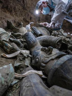三星堆遗址位于四川省广汉市,面积约12平方公里,最早被发现于20世纪20年代。1986年,三星堆1号、2号“祭祀坑”,出土青铜大立人像、青铜神树、青铜面具、金面罩、金杖、象牙等上千件珍贵文物。自2020年以来,四川省文物考古研究院、北京大学、四川大学等科研机构和高校组成联合考古队,在1、2号“祭祀坑”旁边,相继发现、发掘了距今约3000年的3号至8号六个“祭祀坑”。