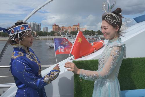 第十二届中俄文化大集开幕式在中俄界江黑龙江黑河市江段举行