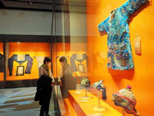 2023年3月7日,观众在中国园林博物馆参观“彩衣——中国女性民族服饰”展。