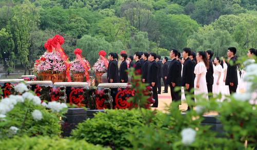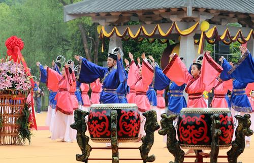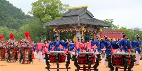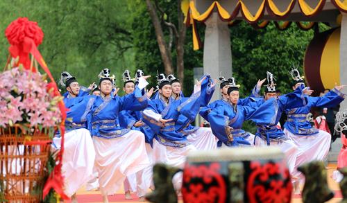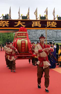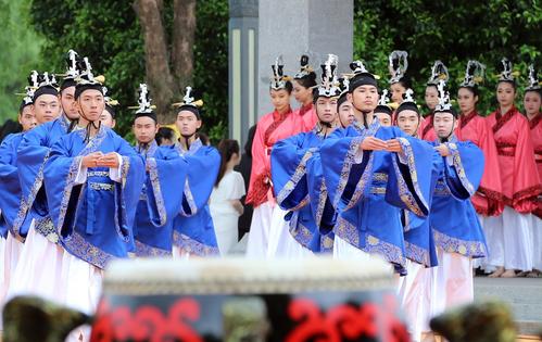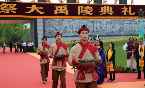 4月20日,农历谷雨,2023年公祭大禹陵典礼在浙江省绍兴市大禹陵广场举行,图为献酒的祭祀仪式。