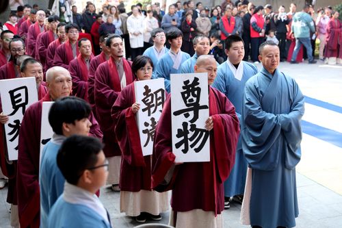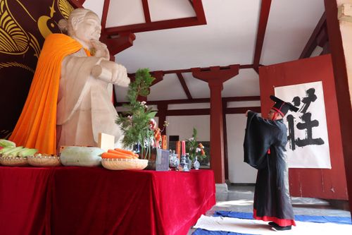 2024年10月23日,安徽省蒙城县举行布衣祭祀庄子大典,各界人士齐聚庄子祠,通过宣读祭牌、舞剑器、香赞、茶赞、花赞、水赞、五谷赞,齐声吟诵《诗经·小雅》等纪念先贤庄子,感悟庄子及道家思想,表达后人对庄子的敬仰,传承和弘扬历史传统文化。