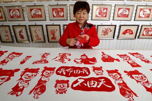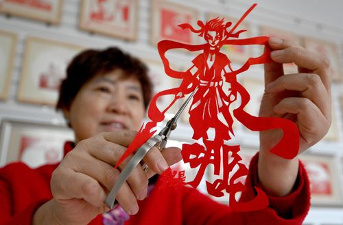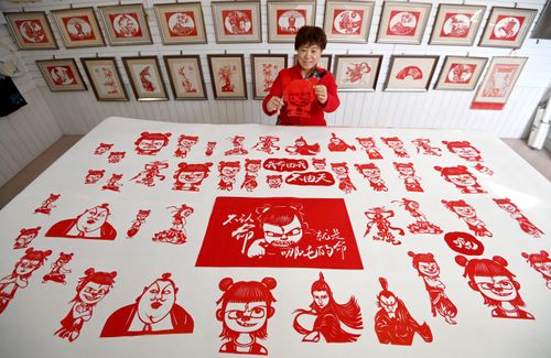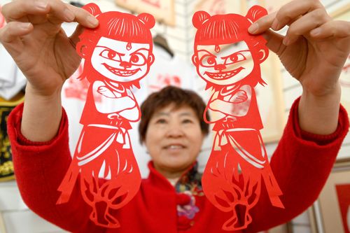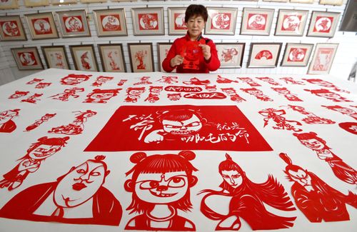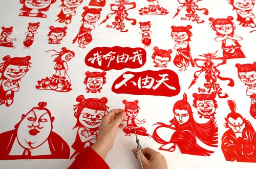 2025年2月13日,河北省邯郸市复兴区剪纸艺人冯石萍结合传统剪纸技艺,创作电影《哪吒之魔童闹海》中哪吒、敖丙、太乙真人、申公豹等人物形象的剪纸作品,栩栩如生,惹人喜爱。
