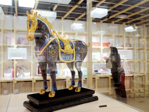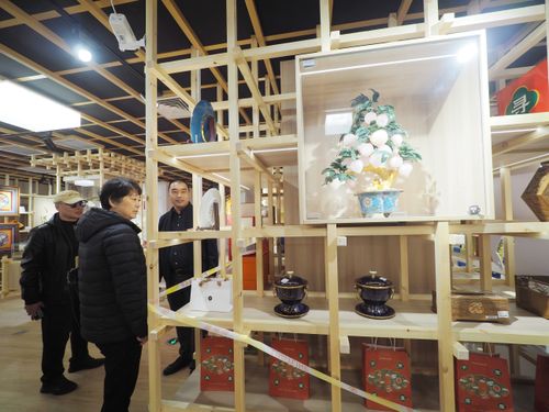 2025年3月20日,市民在北京工美大厦4层的“予寻京喜”——艺术非遗“中国礼物”旗舰店内参观选购。