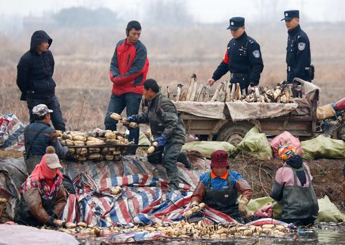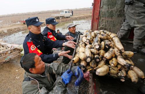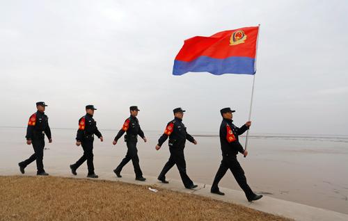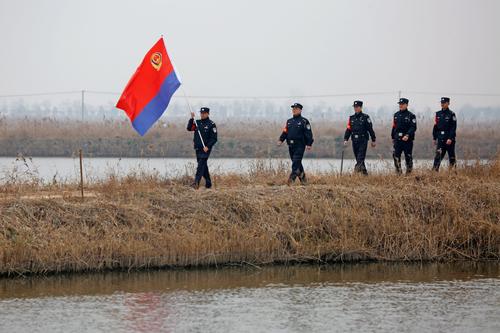 2021年12月15日,陕西省渭南市大荔县范家镇段黄河堤坝,民警进行巡逻。