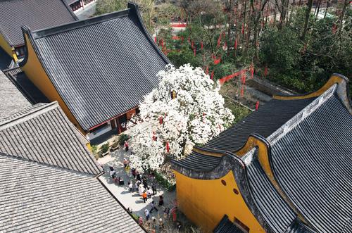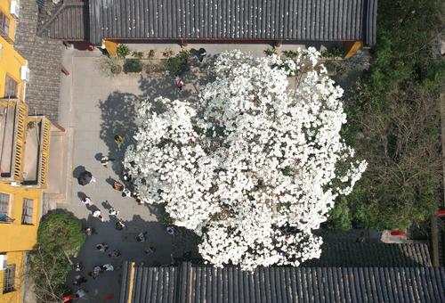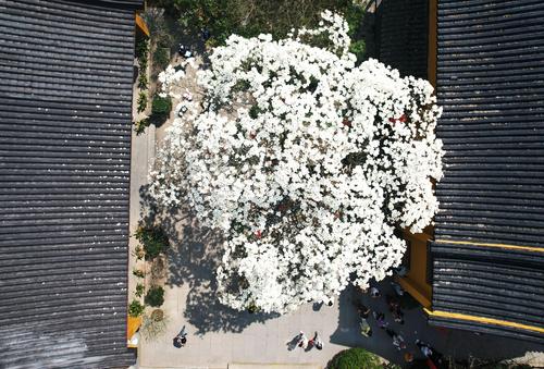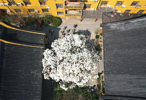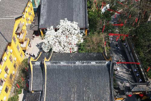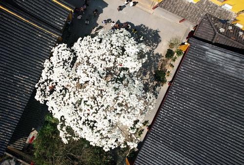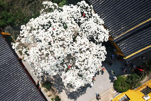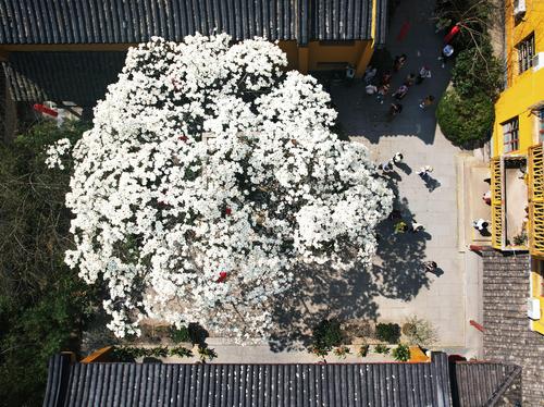 随着位于杭州西湖区法喜寺内的一棵500多年树龄古玉兰树盛花期到来,吸引不少市民游客前来踏青赏花。