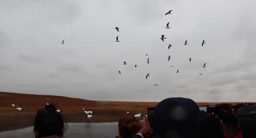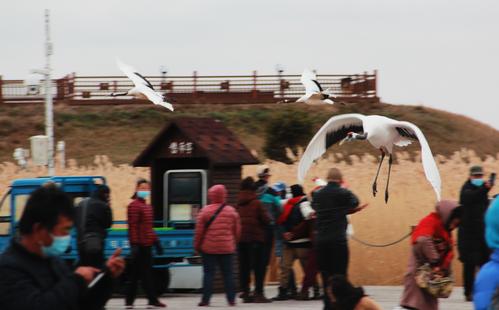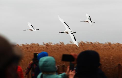 2022年10月26日,黑龙江齐齐哈尔,游客在扎龙湿地赏鸟。扎龙猛禽涵盖了鹰形目、隼形目和鸮形目的所有种,包括鹰、隼、雕、鸢、鹫、鹞、鹗、鸮、鸺鹠等次级生态类群,均为掠食肉食性鸟类。