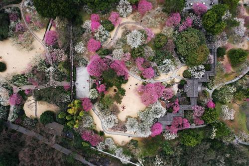 2023年3月1日,杭州植物园内的各色梅花已进入盛花期,市民和游客团队纷至沓来,徜徉梅园,感受早春气息。