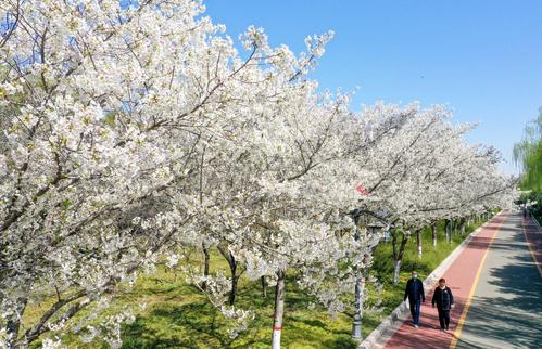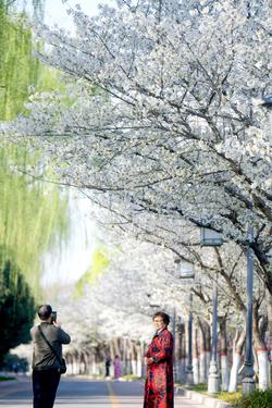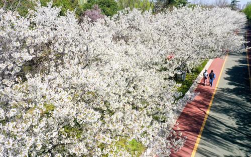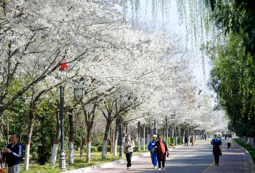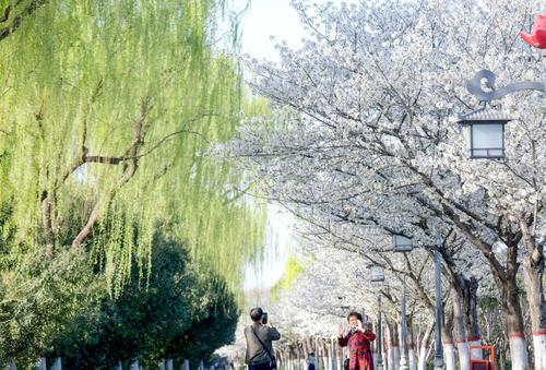 “樱花大道”位于洛阳市洛浦公园南堤(洛阳桥至牡丹桥)段,全长2.4公里,有各类樱花1000余棵,其中早樱235棵。此时樱花已大面积绽放,吸引不少市民赏花休闲。