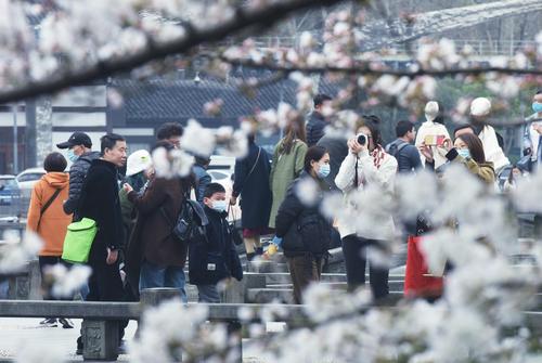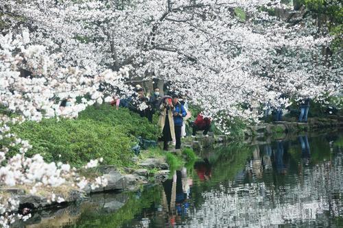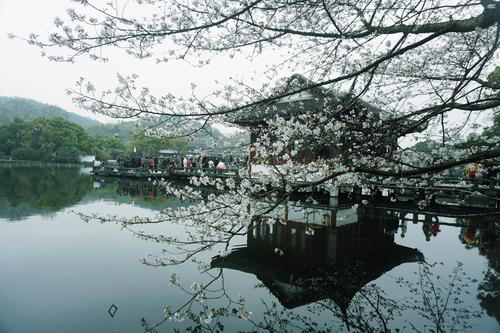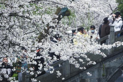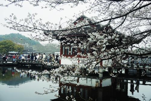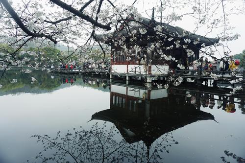 近日,杭州西湖边是樱花盛开,吸引了不少市民和游客前来观赏这如雪般的樱花所带来的春日美景。
