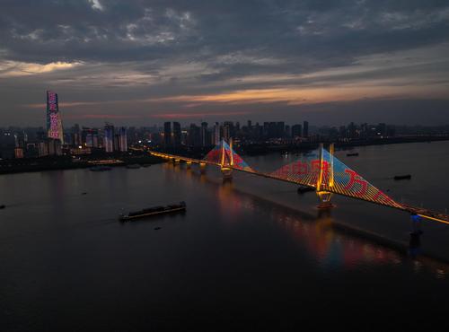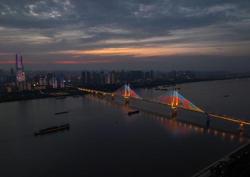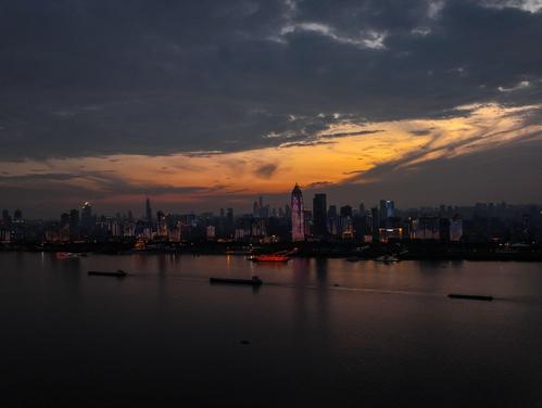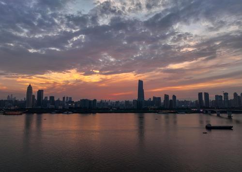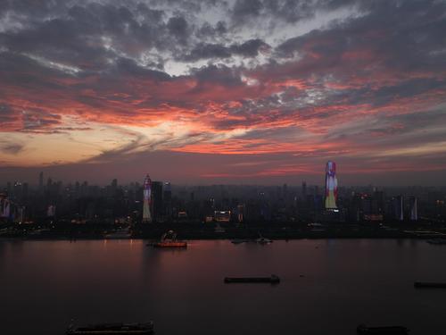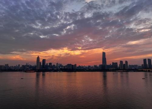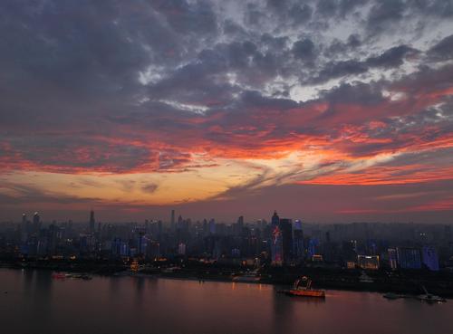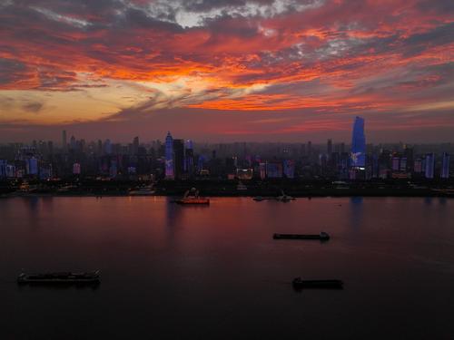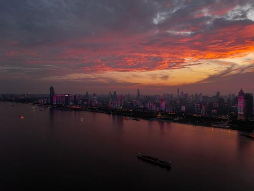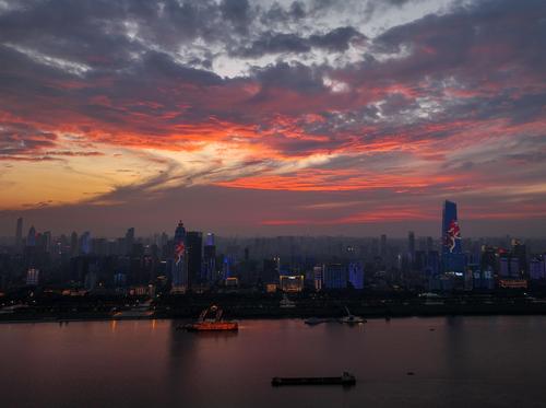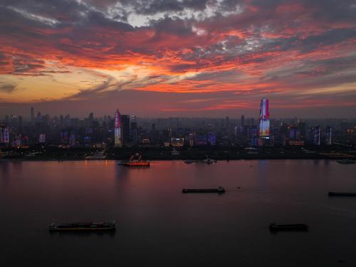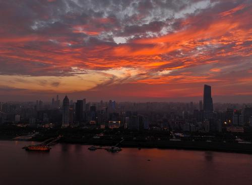 2023年6月19日傍晚,一场降雨过后,湖北武汉上空出现彩霞满天,绚丽多彩的晚霞美景。