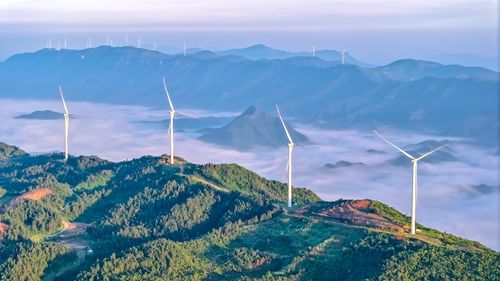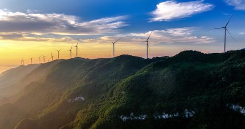 瑞昌市坚持绿色发展理念,利用高山风力资源优势,大力发展绿色清洁能源,推动能源低碳转型,一座座风车迎风旋转,将绿色能源输入千家万户。