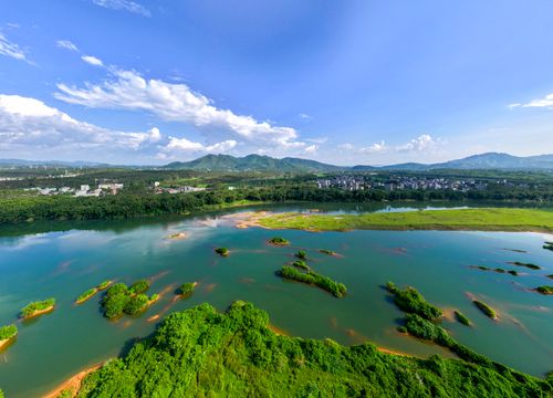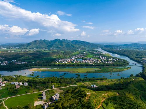 2024年9月16日,广西梧州市藤县和平镇绿色田园、道路、村庄、河流、青山交相辉映,美如画卷。