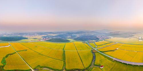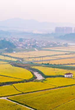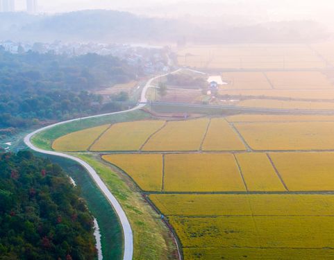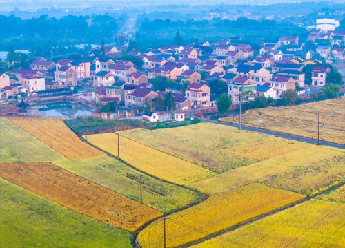 2024年10月24日,江苏省南京市溧水区晶桥镇笪村,金黄的稻田与整齐的村落构成一幅美丽画卷,稻田飘香丰收在望。眼下,全国秋粮收购和秋种加速推进,各地开展新探索,稳步提升粮食产能。农业农村部最新农情调度显示,目前,全国秋收近八成,秋粮收购也在同步展开。