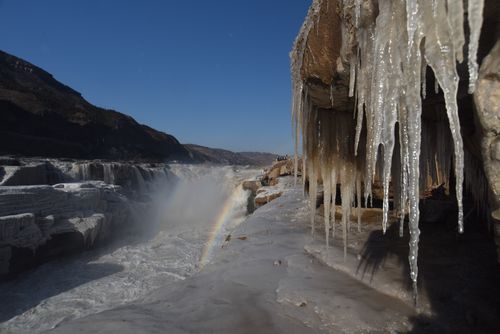 壶口瀑布,彩虹,冰挂