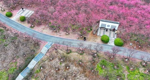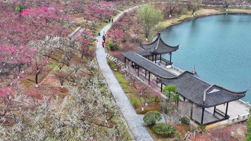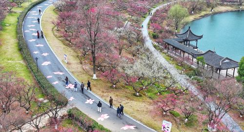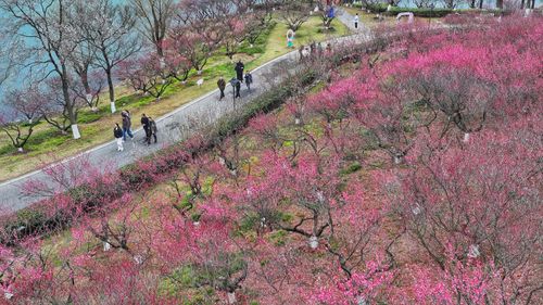 2025年3月5日,江苏省张家港市香山风景区香山梅岭近万株梅花进入最佳观赏期,吸引游客前来赏花,亲近自然,感受春天的气息。