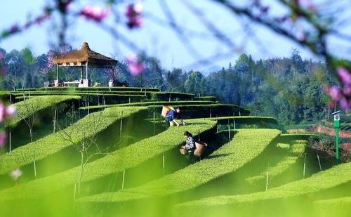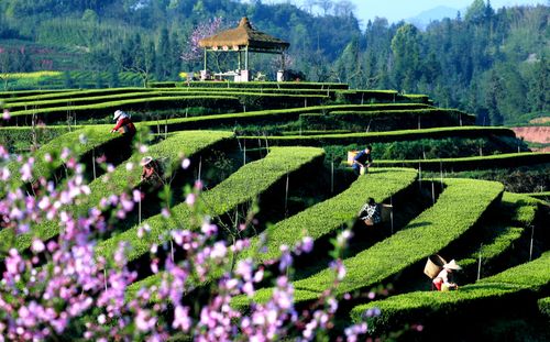 2025年3月25日,在四川省泸州市纳溪区大渡口镇拂羽茶园,茶农们穿梭在一垄垄翠绿的茶树间,忙着采摘明前茶鲜叶,茶园里一派繁忙景象。