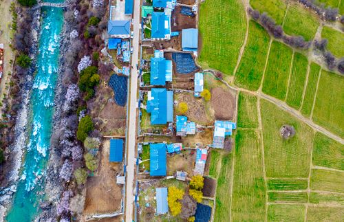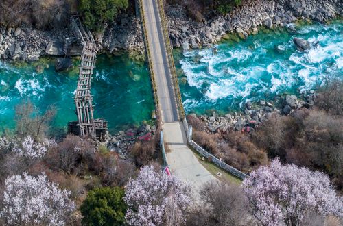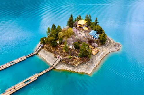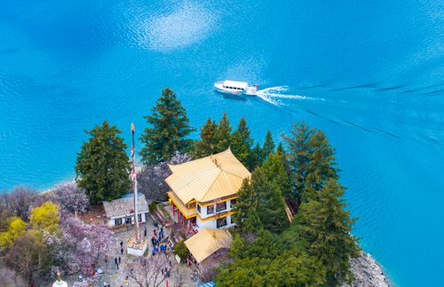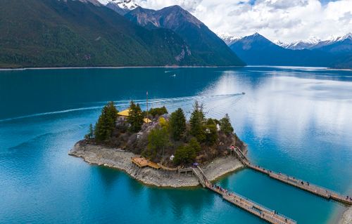 2025年4月16日,西藏自治区林芝市工布江达县巴河上游的高峡深谷中的巴松措风景区,美景如画,湖水清澈湛蓝,吸引各地游客观光打卡。
