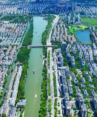 夏末初秋,江苏苏州风和日丽,天高气爽,迎来碧蓝晴空“水晶天”。全长约15.5公里的苏州环古城河水道犹如玉带一般环绕着美丽的千年古城。空中俯瞰古城、街坊、河道在蓝天白云的映衬下,呈现出水清、岸绿、景美的城市生态画卷,别有一番江南水乡独特风韵。