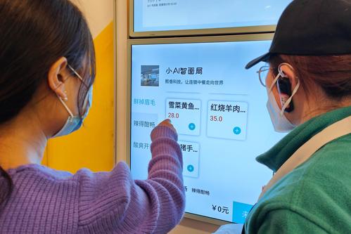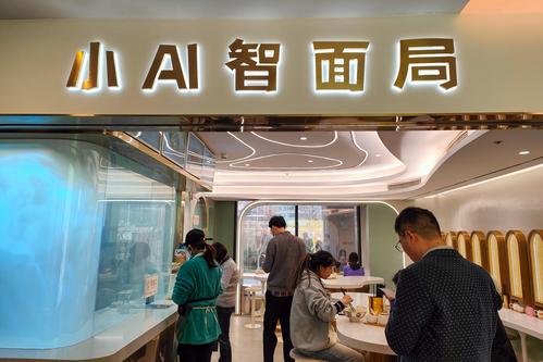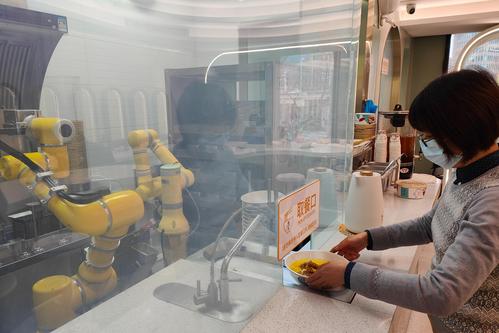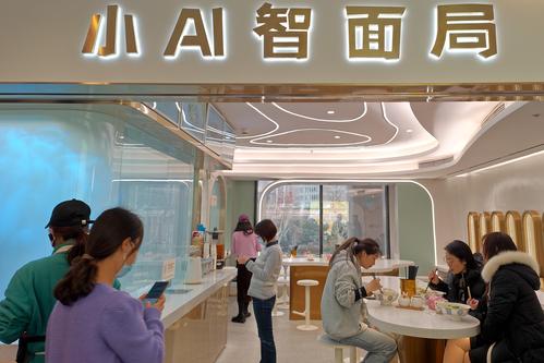 2023年2月22日,上海长宁区世贸商城内一家名为“小AI智面局”的机器人面馆内,不少白领正在用餐。这家面馆的大厨是智能机械臂,从压制面条到煮面、加浇头都由机械臂完成,顾客点单支付后就可以看着“机器大厨”忙碌得制作美味,全程用时不到2分钟,而且可以同步制作三份面。