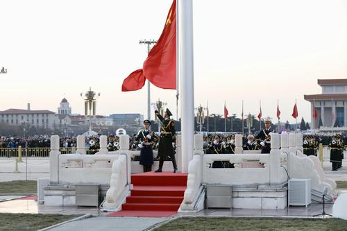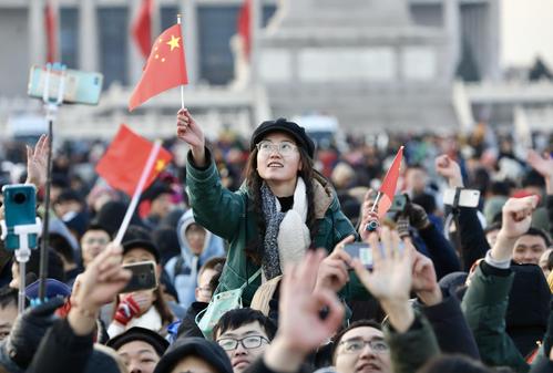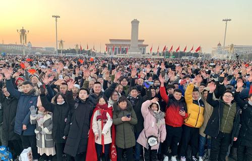 2020年1月1日晨,北京天安门广场举行新年首场升国旗仪式,来自全国各地的群众齐聚天安门广场,共同见证五星红旗冉冉升起的庄严时刻。