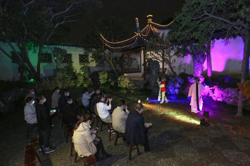 据了解,实景版游园今梦(又名夜花园)由《游园惊梦》《十五贯》《金蛇狂舞》等8个节目组成,演出种类包括江南丝竹、昆曲、评弹、民族舞蹈、民乐独奏等,平均每个节目时长五至六分钟,节目串成一条特色游线,让游客移步换“夜景”, 感受江南地区极具代表性的夜文化。
