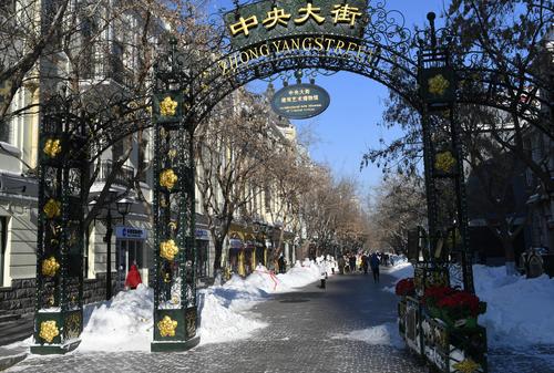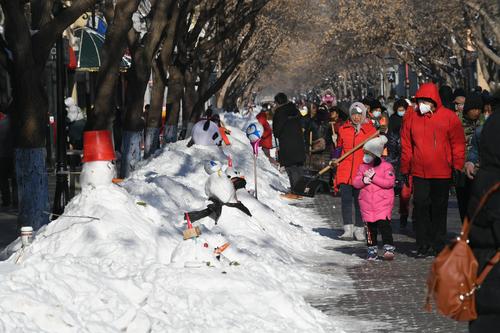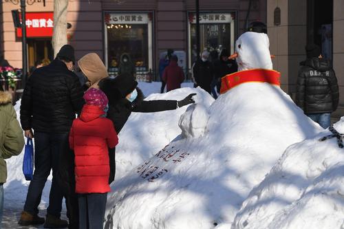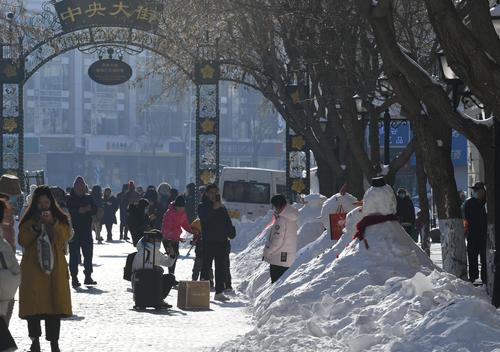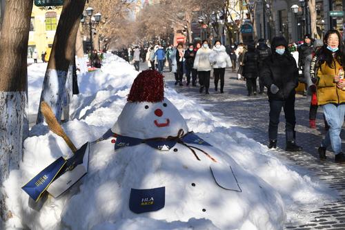 哈尔滨:百年老街中央大街成雪人一条街