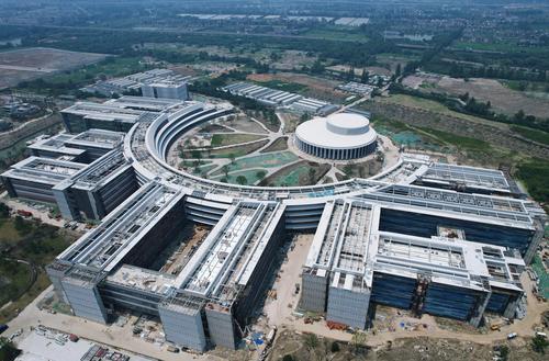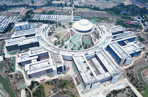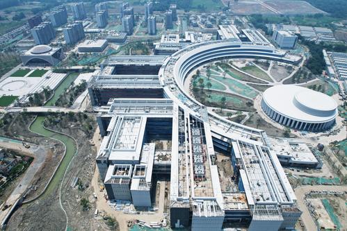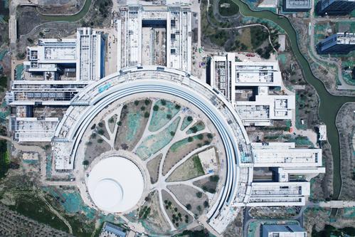 2021年6月24日,空中俯瞰建设中的西湖大学新校区“学术环”。