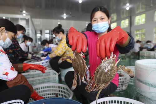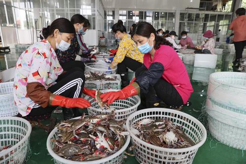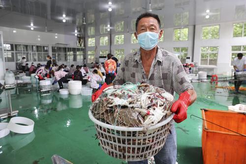 江苏连云港:伏季开捕归来 收获梭子蟹