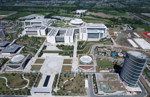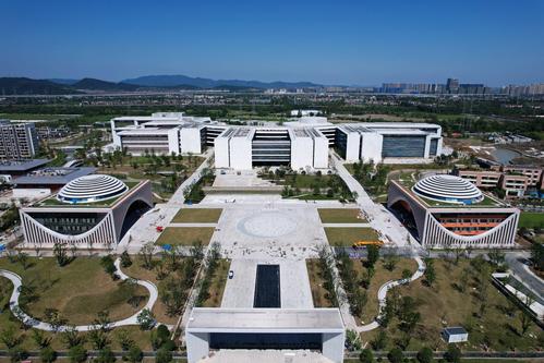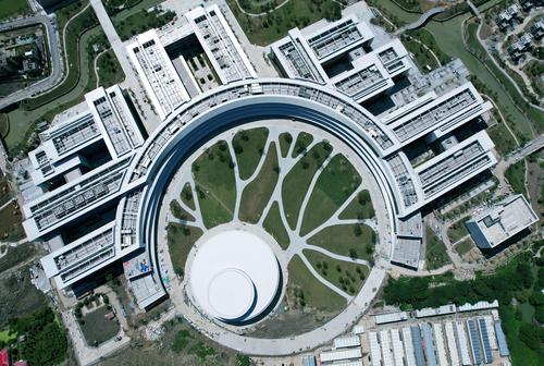 2021年9月22日,从空中俯瞰的西湖大学新校区已建成的“学术环”。