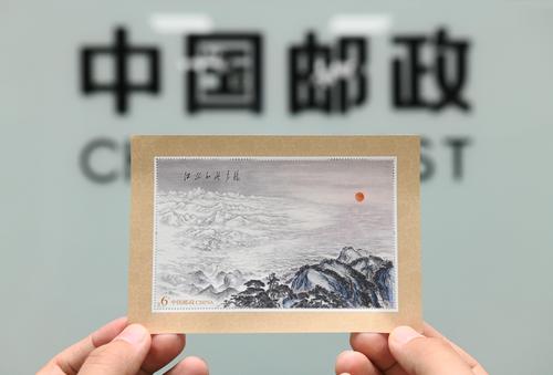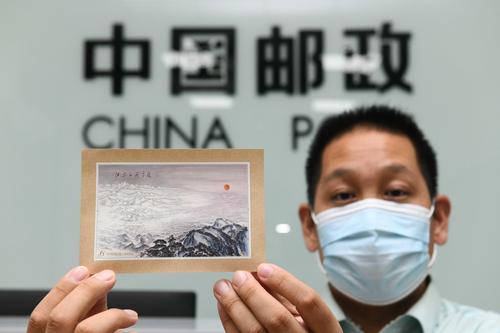 2021年9月24日,中国邮政集团公司河北省新乐市分公司工作人员展示即将发行的《江山如此多娇》特种邮票。中国邮政定于9月25日发行《江山如此多娇》特种邮票小型张1枚。全套邮票面值6元。邮票小型张计划发行数量为600万套。