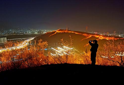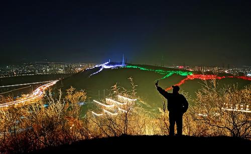 为迎接北京冬奥会的召开,提升冬奥赛场周边环境整治,石景山区对北京冬奥组委会驻地北侧的红光山实施夜景灯光照明。
