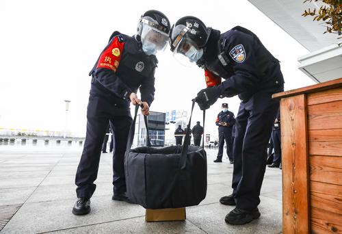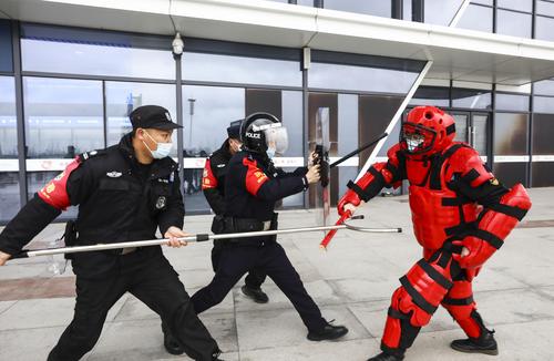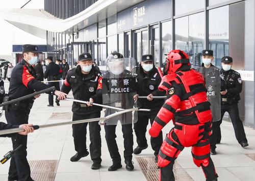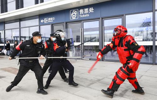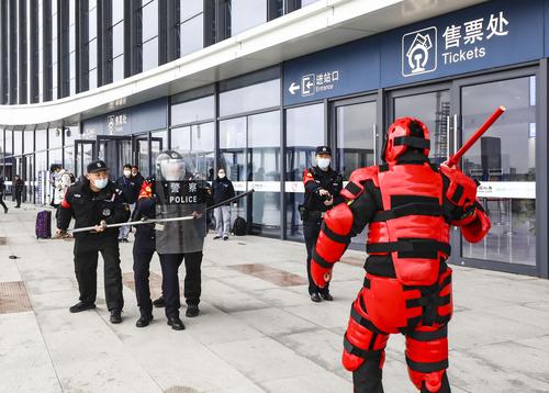 2022年1月5日,江苏淮安市高铁东站派出所举行防恐防暴演练,现场设置恐怖分子袭击公共场所旅客,处置爆炸物、紧急疏散旅客等,检验民警应急快速处置能力,保障旅客生命财产安全。
