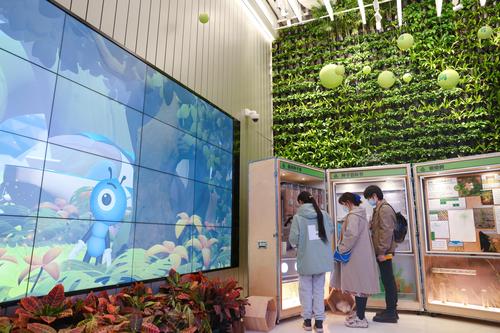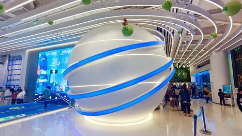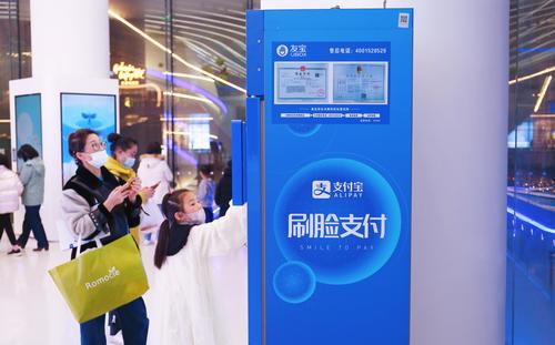 2022年2月27日,上海,浦东新晋高科技地标支付宝空间站(AlipayLab)是一个智慧城市一站式生活服务体验馆,大屏幕小屏幕无处不在,还能与游客的手机互联互动。飞跃蚂蚁森林、5G智能赛车、收集蚂蚁能量球等新鲜趣味、寓教于乐的AI高科技创意游戏吸引家长带着孩子体验,用户可以在APP小程序免费预约游玩,感受各种移动支付、刷脸支付“新玩法”来购买文创产品、可爱的蚂蚁毛绒玩具等。