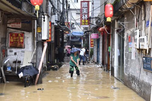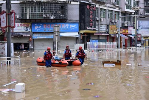 连日来,福建省南平市遭遇强降雨,强降雨导致各地市城区多处积水,当地民间救援队伍展开转移群众工作。
