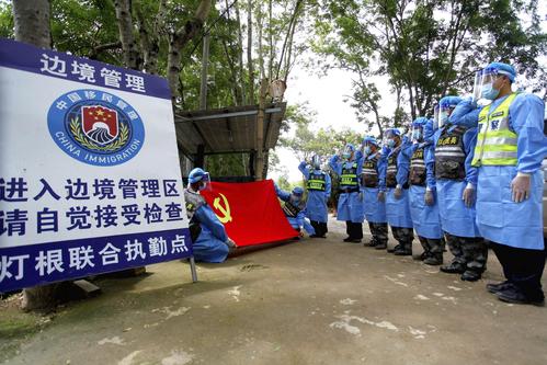 2022年6月28日,驻守在祖国西南边陲的云南普洱边境管理支队芒信边境派出所党支部开展“坚守边境、铁心向党”主题党日活动,迎接建党101周年的到来。