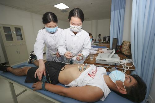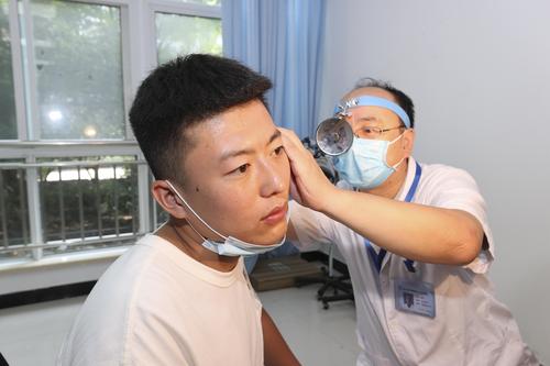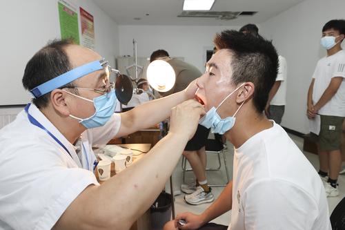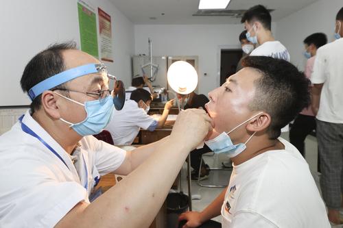 2022年8月2日,江苏省连云港市赣榆区应征青年在征兵体检站接受身体检查。