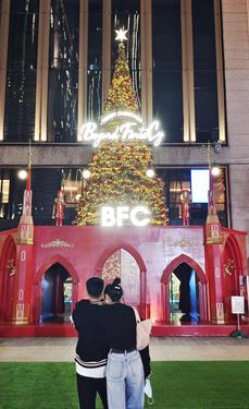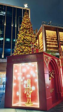 2022年11月13日,上海,位于BFC外滩金融中心的外滩枫径夜市在立冬后开始提前营造圣诞节主题集市氛围,加快节日营销速度促进线下消费,高大浪漫的圣诞树和胡桃夹子玩偶城堡亮灯后十分显眼,吸引不少魔都年轻人打卡拍照。