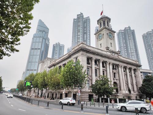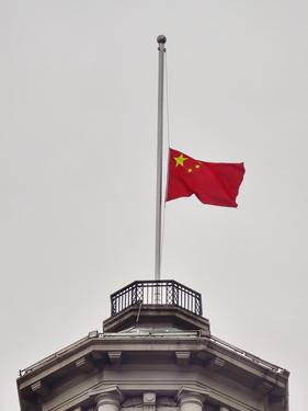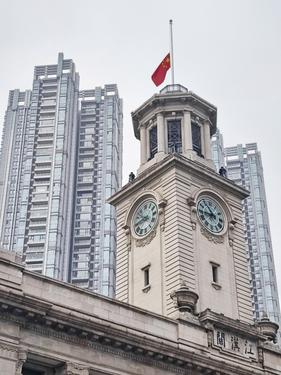 2022年12月6日,湖北武汉,江汉关大楼下半旗志哀,悼念江泽民同志。