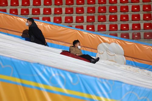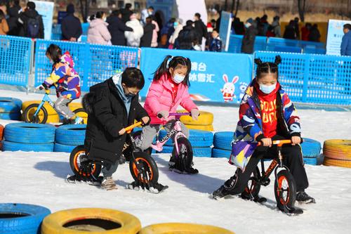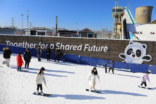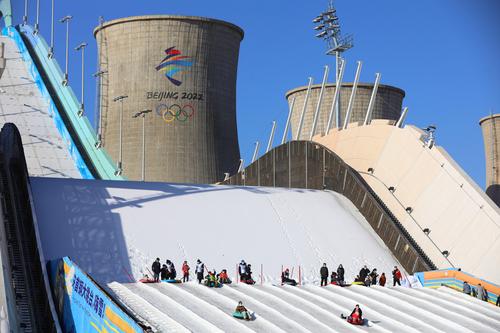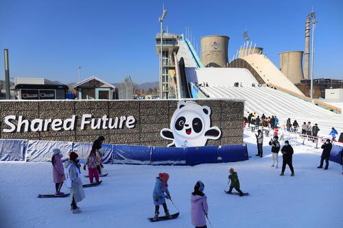 2023年1月8日,游客在北京首钢滑雪大跳台体验冰雪运动。近日,首钢园冰雪汇在北京首钢滑雪大跳台正式开园,本次冰雪汇以“玩转大跳台,畅游冰雪汇”为主题,19个项目集合了雪圈冲浪、勇敢碰碰撞、雪地平衡车等游乐设施。冰雪汇将持续至2月28日。